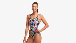Funkita’s classic training style with signature diamond back strap finish and modest rear coverage is perfect for lap sessions. Features a circular cut-out back. With front lining and Funkita embroidery, this easy style says it all.